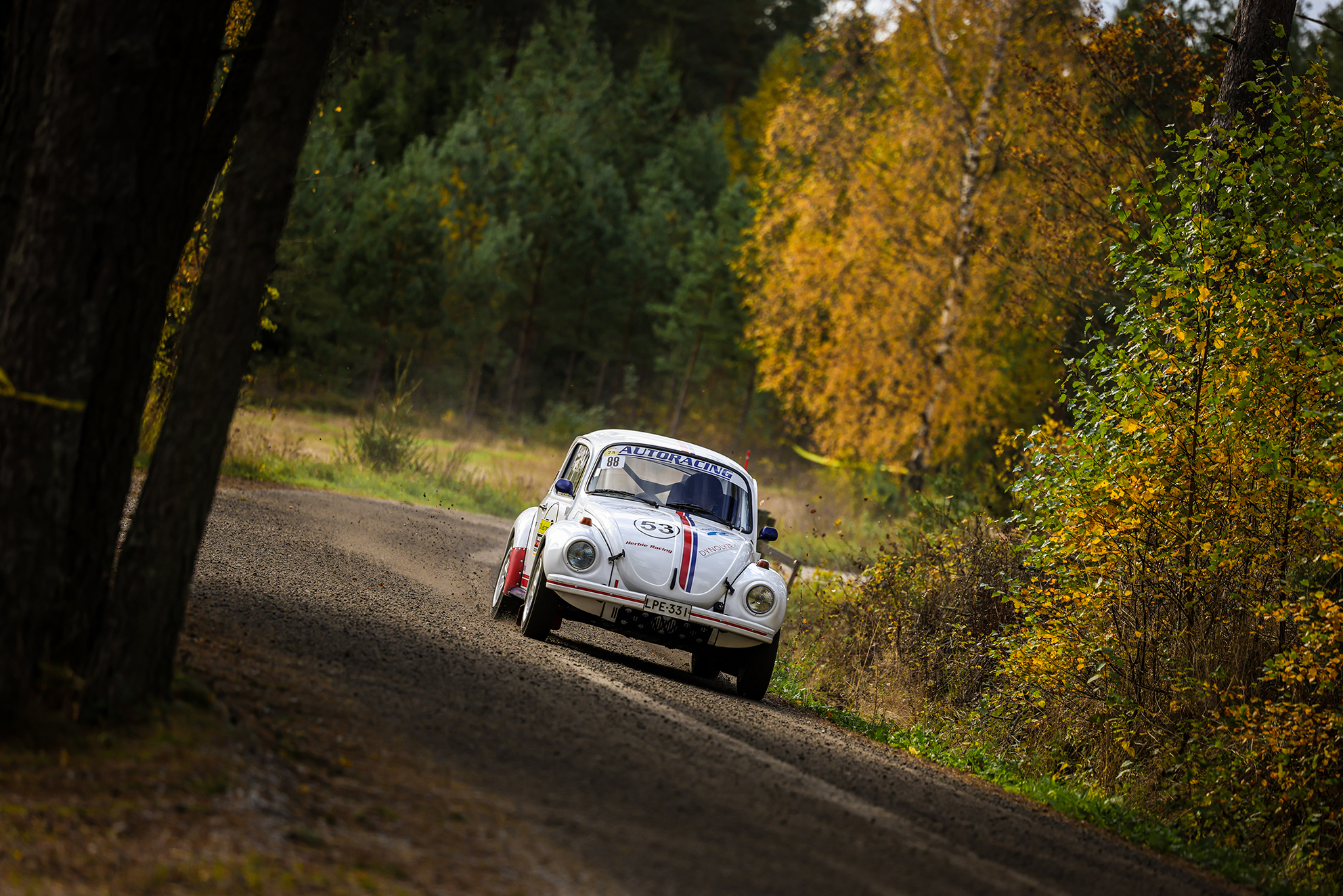 Kari Haapalainen ja ”Herbie” kauniissa Laitilan maisemissa SM Oili Jalonen Sprintissä. Historic-luokkien nopein sekä sarjan mestari mallia 2025. Kuva: Janette/AKK