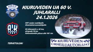 Kiuruveden UA:n 60-vuotisjuhlaralli aloittaa komeasti Historic Rally Trophy -sarjan 2026. Järjestelyt ovat jo kovassa vauhdissa meneillään. Järjestäjillä on monta uutta, mielenkiintoista ajatusta kisan toteutumiseksi. EK-kilometrejä on luvassa noin 62 ja siirtymiä 76 km. Reitin kokonaispituus noin 140 km. Kiinnostaako testipätkä torstaina 23.1.2026? Nyt suunnitellaan HRT-kilpailijoille myös testipätkää kisaa edeltävälle perjantaille 23.1.2026.